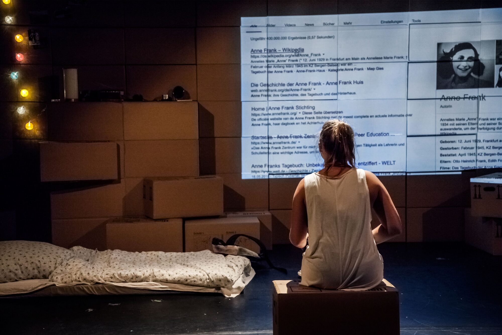 »Bei allem, was ich tue, muss ich an die anderen denken, die weg sind. Und wenn ich wegen etwas lachen muss, höre ich erschrocken wieder auf und denke mir, dass es eine Schande ist, fröhlich zu sein. Aber muss ich denn den ganzen Tag weinen?« Das Tagebuch war für Anne Frank Ersatz für eine Freundin und Gesprächspartnerin. In dem engen Versteck vor den Nationalsozialisten ist es ein Ventil für ihre Sorgen und Ängste. In ihm spiegeln sich die politischen Geschehnisse sowie die Entwicklung eines Mädchens zur jungen Frau.»Das Tagebuch der Anne Frank« bleibt eines der eindringlichsten Dokumente der Judenverfolgung im Nationalsozialismus.Wir weisen darauf hin, dass in unserer Produktion von »Anne Frank« Toneinspielungen (bspw. ein Flieger- bzw. Bombenalarm) zum Einsatz kommen, die bei Menschen mit Kriegserfahrung Erinnerungen an zurückliegende Traumata auslösen können. »Heimwärts-Projekt« mit dem Theater Herford, gefördert durch das Kultursekretariat Gütersloh.