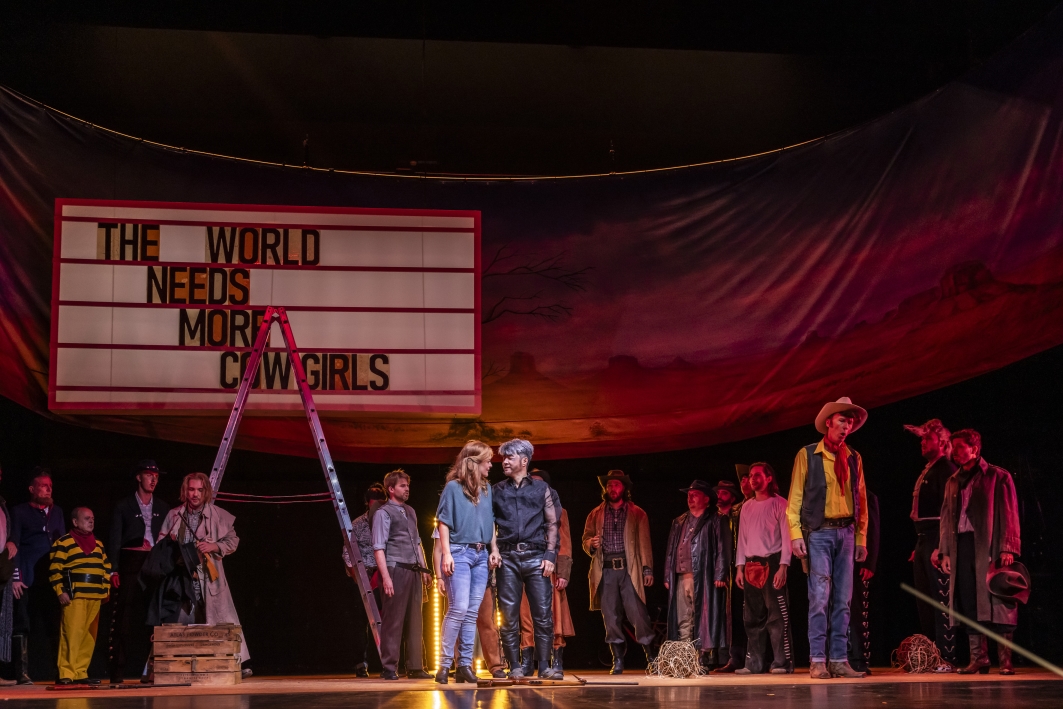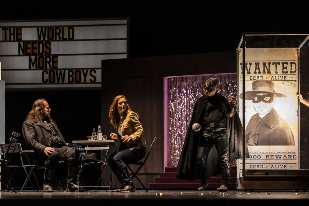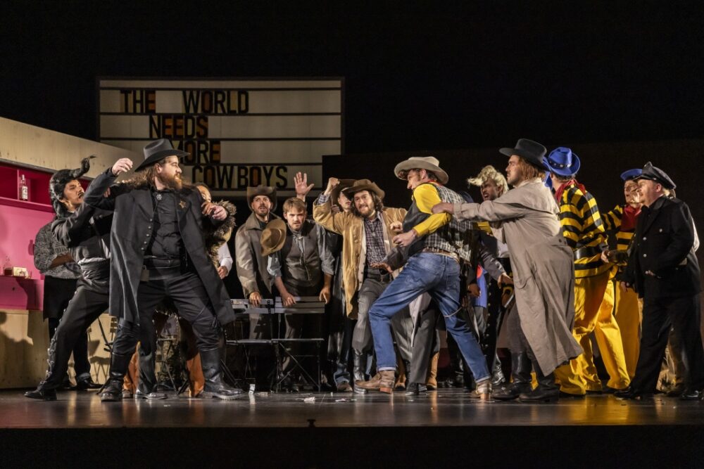 Minnie ist die einzige Frau an einem Ort, an dem die Sehnsucht nach Reichtum und Ruhm den rauen, harten Ton überlagert. Sie betreibt eine Bar und wird von allen Männern verehrt. Insbesondere Sheriff Jack Rance ringt um Minnies Gunst. Doch Minnie lässt ihn knallhart abblitzen: Sie glaubt noch immer an die eine große Liebe. Da betritt ein Fremder die Bar, der sich als »Johnson aus Sacramento« ausgibt. Er und Minnie kennen sich von früher und unübersehbar knistert es zwischen den beiden. Jack Rance wird rasend vor Eifersucht und als klar wird, dass »Johnson« in Wirklichkeit der Räuber Ramerrez ist, auf den ein Kopfgeld angesetzt ist, geht es schnell um Leben und Tod. Doch am Ende siegt – ganz nach Hollywood-Manier – die Liebe. Mit »La fanciulla del West« schuf Puccini eine mitreißende Kombination aus hochemotionalem Liebesdrama und packendem Western; für ihn selbst »die beste Oper, die ich jemals geschrieben habe«.