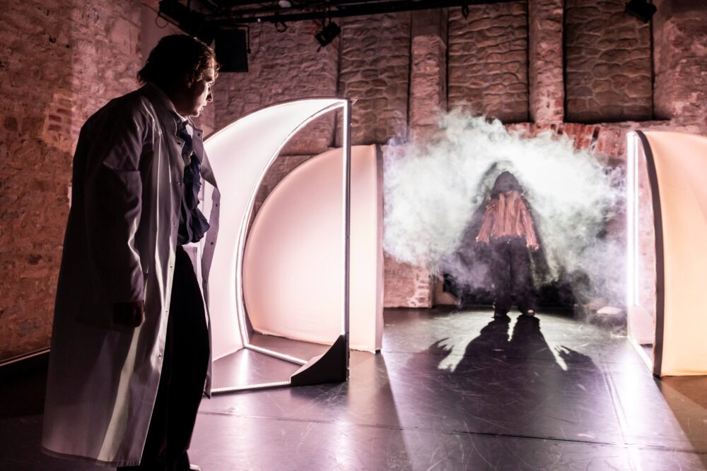 Mensch oder Monster? In Mary Shelleys 1818 veröffentlichtem Roman verfolgt der junge Wissenschaftler Victor Frankenstein ein hochfliegendes Ziel: Aus verschiedenen Körperteilen setzt er einen Menschen zusammen und versucht diesen zu beleben. Das Ergebnis seines Experiments ist jedoch durchaus ambivalent. Als er seinem »Werk« schließlich von Angesicht zu Angesicht gegenübersteht, packt ihn das Entsetzen und er flüchtet vor seiner eigenen Schöpfung. Handelt es sich um ein dämonisches Monster, geschaffen durch Hybris und zwanghaften Forscherdrang? Oder ist dieses ohne eigenes Zutun in die Welt gesetzte Wesen nicht auch ein verletzliches, sich nach Liebe, Zuneigung und Freundschaft sehnendes Geschöpf?Vom Prometheus-Mythos der Antike, über die alchemistischen Versuche des Mittelalters bis zu den nicht nur verheißungsvollen Möglichkeiten der Jetzt-Zeit, in der Gentechnik, Biotechnologie und Künstliche Intelligenz rasante Fortschritte machen, – der Wunsch, einen künstlichen Menschen zu schaffen, zieht sich durch die Geschichte und ist heutzutage wohl brisanter denn je.In dieser Produktion werden stroboskopartige Lichteffekte verwendet, die lichtempfindliche Zuschauende beeinträchtigen können. Wir bitten um Beachtung.